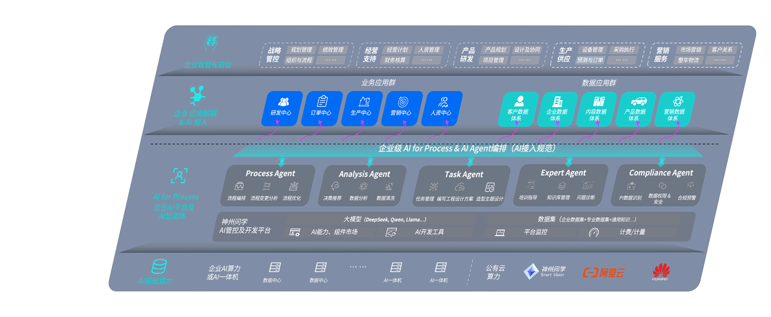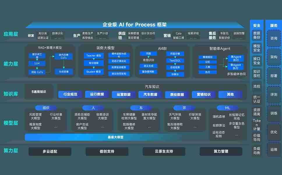 端到端的一站式AI工作空间深度融合了从企业战略规划到日常经营的全流程业务板块,,,,定向解决车企内部领域多、、部门多、、链条长、、场景碎片化等难题,,,,支持车企快速构建以AI为核心的生产力写作体系,,,实现任务执行与AI能力的无缝集成与交互